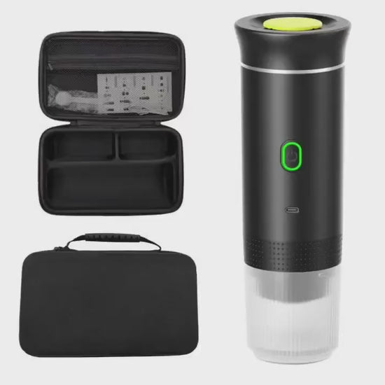 Profitez d'un véritable café expresso , où que vous soyez, grâce à cette machine à café portable sans fil . Fonctionnant avec café moulu et capsules (petites et longues), elle est parfaite pour la voiture, le bureau, le camping ou même votre chambre.