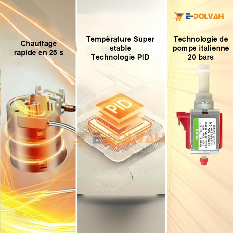 ✅ Pompe puissante (16 à 20 bars) : Un expresso riche et parfaitement extrait